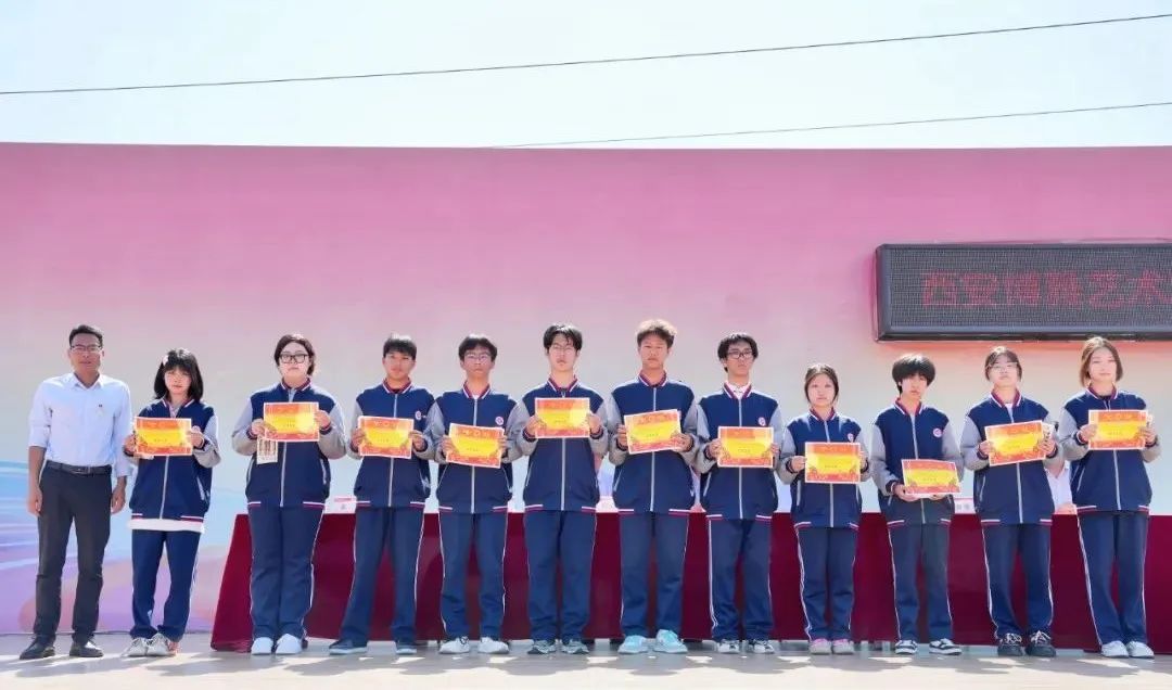 灼灼奖章映韶华,勤奋终得榜上名。教务处副主任薛彤依次宣读了获得“单科状元”、“学习标兵”、“进步之星”、“三好学生”、“先进班集体”、“学风进步班级”、“研学写生优秀作品奖”及“国家奖学金”获奖名单。