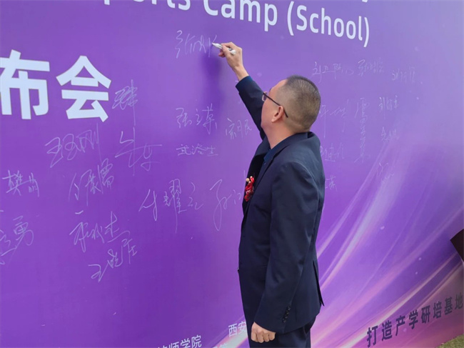 10月21日,西安体育学院西安精英成长体育营地(学校)揭牌仪式暨战略合作签约新闻发布会在西安体育学院鄠邑校区举办。省体育局青少处副处长王玉刚、省手球曲棍球棒球垒球运动管理中心主任方晓刚、西安体育学院鄠邑校区管委会主任朱军、西安精英成长体育营地(学校)负责人张保新共同为“西安体育学院精英成长体育培训基地”启动并揭牌,西安博雅艺术职业高中校长张胜强参加签约授牌仪式。